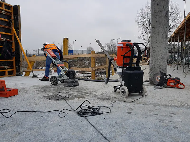 Szlifierka do betonu to urządzenie nie mniej ważne, mimo że pozornie wykorzystywane do prac kosmetycznych w porównaniu z frezarką. Dzięki szlifierce można w wydajny sposób nadać betonowi pożądany wygląd przed przystąpieniem do dalszych prac remontowych. Celem szlifowania jest usunięcie niepożądanych zarysowań oraz zmniejszenie ich widoczności. Możliwe jest szlifowanie na mokro i na sucho, a rezultatem jest uzyskanie idealnie gładkiej powierzchni. Następnie może być ona utwardzona i zaimpregnowana.